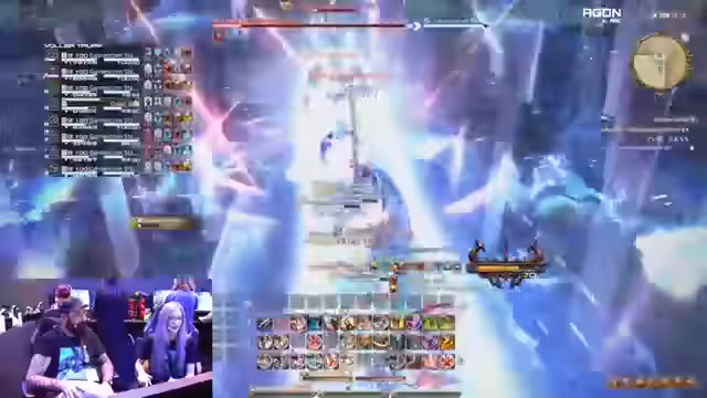 02:30:45Die Premiere von Tosender Donner auf der Gamescom 2024 wird gefeiert. Die Moderatoren bemerken, dass es nicht viele Fans der Musik zu geben scheint. Im Spiel wird die Arena beschädigt. Die Moderatoren kommentieren die Mechaniken des Spiels, wobei einer seine Abneigung gegen eine bestimmte Mechanik äußert. Die Zuschauer werden gegrüßt und die Moderatoren kommentieren, wie frisch sie trotz der Wartezeit aussehen. Die Moderatoren sprechen über die Schwierigkeiten, sich fünf Dinge zu merken, und die Ungenauigkeit des Server-Tickers. Sie beobachten das Spielgeschehen und kommentieren die Klassen der Spieler und die Prozentanzeige des Fortschritts. Die Moderatoren weisen darauf hin, dass mehr Verwundbarkeits-Debuffs mehr Schaden verursachen. Die Klone der Gegner geben die sicheren Zonen an und der Tänzer gibt dem Dragoon einen Buff. Der Tank nimmt Schaden und der Warrior hat mehrere Bullen-Checks. Die Moderatoren sprechen über die Schwierigkeit, die Mechaniken des Kampfes zu erkennen, und gestehen, dass sie ihren Tropfen letzte Woche weggeworfen haben.