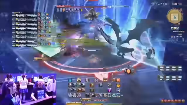 05:59:31Es folgt die M4-Challenge, bei der ein Team in wunderschönen Gaia-Cosplay antritt. Das Team besteht aus Doppel Warrior, Doppel White Mage, einem Dragoon, einem Tänzer, einem Red Mage und einem Viper. Es wird spekuliert, wie viele Turns das Team schaffen wird. Während des Kampfes wird eine exklusive Urkunde für die abgeschlossene Challenge auf der Bühne gezeigt, die den Namen des Spielers, die Stammwelt und die abgeschlossene Challenge enthält. Die Musik beginnt, und das Team startet den Kampf gegen den Boss. Der Kampf wird aus der Perspektive eines Tanks gezeigt, was eine ungewöhnliche Ansicht ermöglicht. Das Design des Bosses wird gelobt, und die Gruppe meistert die erste Phase des Kampfes souverän. Es wird erklärt, wie man mit einem Elektroben umgeht, indem man einen Teil der Arena zerstört.