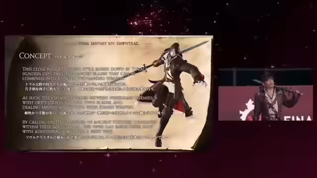 00:39:51Mit Dawn Trail wird der Dual-Wielding Melee DPS Viper als neuer Job eingeführt, ein Original für Final Fantasy XIV, der sich an Spieler richtet, die sich einen neuen Dual-Wield-Job wünschen, der sich vom Ninja unterscheidet. Der Viper ist speziell für Dawn Trail konzipiert und verwendet einzigartige Dual-Blades, wobei der Start in Ulda erfolgt und die einzige Voraussetzung der Besitz der Dawn Trail-Erweiterung sowie ein Job auf Level 80 ist. Im Kampf nutzt der Viper einhändige Klingen, die zu einer zweihändigen Waffe kombiniert werden können, und verfügt über eine spezielle Kraft zur temporären Verstärkung, was ihn zu einem technisch anspruchsvollen, aber stilvollen Job macht. Dawn Trail wird zwei neue Jobs bieten, wobei der zweite ein Ranged Magic DPS sein wird, dessen Enthüllung jedoch erst in Tokio erfolgt. Die Geschichte von Dawn Trail versetzt die Warriors of Light in einen Sommerurlaub im fernen westlichen Land Tural, wo sie in einen Nachfolgestreit um den Thron verwickelt werden.