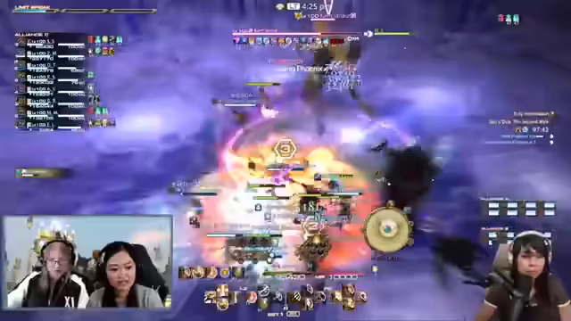 00:40:26Während des Durchspielens des Raids tauchen Gespräche über Nostalgie auf, insbesondere im Vergleich zu Final Fantasy XI. Moderatoren erinnern sich an die 'Airship Fight'-Kämpfe und die Notorious Monsters Ultima und Omega. Die Teammitglieder betonen, dass sie keinen Loot gegen die Spieler rollen und alle Beute abgeben. Es werden humorvolle Momente, wie das versehentliche Töten eines Teammitglieds, und der Dank an die Heiler geäußert.