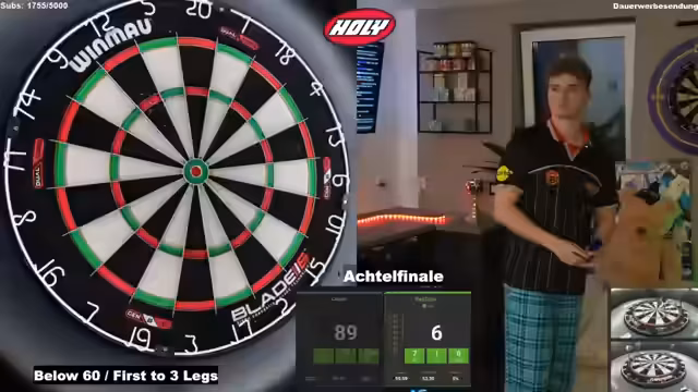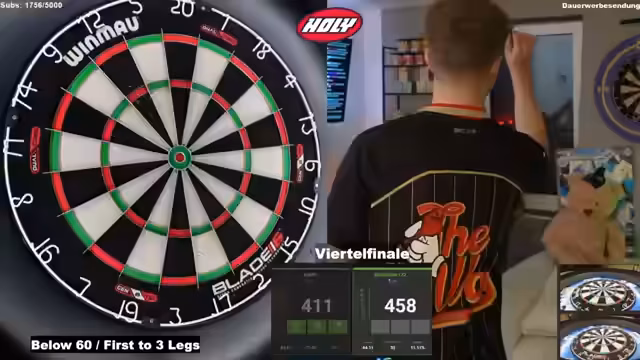 02:30:01Der Streamer betont, dass man mit so einem Average im Turnier nicht weit kommt und vergleicht sich mit anderen Spielern. Er bedankt sich bei Followern und freut sich über das Erreichen von 6000 Abonnenten. Es geht ins Viertelfinale. Währenddessen kommt ein Kollege zu Besuch, dem kurz die Tür geöffnet werden muss. Der Streamer bedankt sich für ein Prime-Abo. Es wird über den Namen des Bären gesprochen, der immer der Coach war. Der Streamer bedankt sich für einen Sub und die Rettung vor der Insolvenz. Es wird erwähnt, dass noch nie ein Below-60-Turnier gewonnen wurde, während Below-50-Turniere schon einige Male gewonnen wurden. Below-60-Turniere sind schwieriger und erfordern einen 70er Average im Finale. Der Streamer informiert sich über den aktuellen Stand beim Eishockey und das knappe Ergebnis. Es wird über das Drehen der Pfeile beim Werfen diskutiert. Der Streamer weiß nicht, wann Skolia wiederkommt und es daher keinen Code gibt. Below 60 geht immer bis 3. Es wird sich über einen gelungenen Wurf gefreut und nach Chakas im Chat gefragt. Der Streamer spielt lieber mit fettigen Fingern. Es wird über Single-Out-Turniere diskutiert. Der Streamer spricht über Probleme mit dem Anspielen der 19 und das Switchen. Es wird ein schlechter Wurf analysiert und betont, dass man sich kein Beispiel daran nehmen sollte.