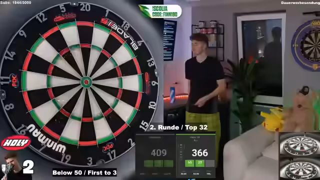 03:12:38Der Streamer kündigt eine weitere Folge auf YouTube an, in der er Online-Darts-Turniere spielt, diesmal in einem 40-50er Turnier, da es keine Below-60-Turniere gibt. Er bittet die Zuschauer, ein Like dazulassen und auf Twitch zu folgen. Es wird ein Holy Renewal gemacht und der Discord wird geteilt. Der Streamer scherzt über eine Niederlage gegen einen 13-Jährigen im Finale und hofft, dass er und Carlos im nächsten Jahr am Creator Cup teilnehmen können. Er fragt Carlos nach seinem aktuellen Average und bedankt sich bei Noelle für fünf Gifted Subs. Es wird überlegt, ob Carlos für seine Holy-Bestellungen einen eigenen Code bekommt und es wird vorgeschlagen, dass sich die Zuschauer mit den Bestellungen abwechseln sollen, um beide zu unterstützen. Raspberry Raptor wird als Energy-Empfehlung ausgesprochen.
