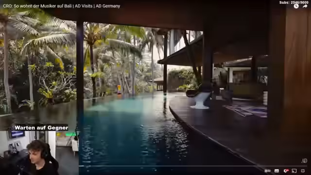 00:57:32Einem Zuschauertipp folgend, wird eine Villa auf Bali gezeigt, die möglicherweise einem Musiker gehört. Es wird über Architektur und das Leben dort spekuliert. Der Streamer zeigt sich begeistert von den Räumlichkeiten und der Aussicht. Nach der Besichtigung kehrt der Fokus zurück zum Stream, die Werbung für Holy wiederholt und es wird der Countdown für die bevorstehende Spielehow mit Felix gestartet.