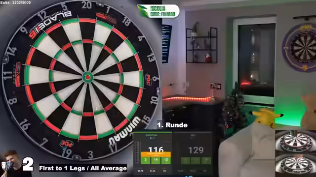 01:42:28Während des Streams wird das Achtelfinale gegen Marian angespielt, mit einem 48er Average und 138 Spielen. Der Streamer erwähnt, dass der Mann weiß, wie man Dartpfeile bedient und einen 45er Average gespielt hat. Es gibt eine Diskussion über Turniermeldeverhalten und die Zufriedenheit der Zuschauer bei Teilnahmen. Der Streamer spielt über weite Teile mit einem 65er Average, was nicht reicht, um sich abzusetzen, während der Gegner stark auf Doppel wirft. Das Spiel endet bitter mit einem verpassten Sieg trotz guter Chancen.