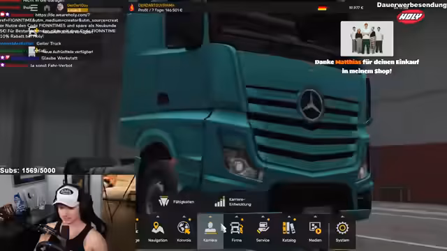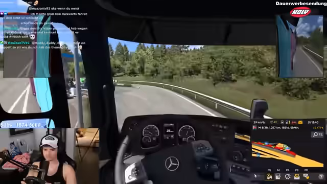 05:10:44Der Stream startet mit der Ankunft des Streamers in seinem virtuellen Truck, um eine lange Fahrt nach Italien anzutreten. Geplant war eine entspannte Reise, doch die Strecke erweist sich als lang, mit über 1200 Kilometer und mehreren Stunden Spielzeit. Ein Dart-Turnier für später am Abend um 22:30 Uhr wird kurz angekündigt. Einige Zuschauer werden im Chat gegrüßt und zu einem Follow auf Twitch aufgerufen. Der Streamer äußert seine Freude über die große Zuschauerbeteiligung bei anderen Inhalten und kündigt an, dass heute kein Dart gespielt wird, da es ein 'chilliger Trip' sein soll.