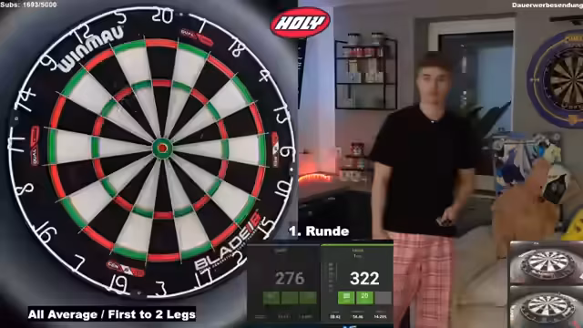 00:58:14Der Streamer plant, am Freitag wieder an einem Tennisturnier teilzunehmen und dieses zu filmen. Er überlegt, sich dafür eine GoPro zu kaufen. Es wird überlegt, wie Ole seine Videos macht. Der Streamer diskutiert mit dem Chat über die Vor- und Nachteile verschiedener Kameras. Er überlegt, sich eine Osmo Action oder eine Pocket zu kaufen. Der Streamer verliert ein Dart-Spiel und ärgert sich darüber. Er plant, eine Challenge gegen Carlos zu machen. Der Streamer trinkt Holy Zerk und macht Werbung dafür. Er erklärt, dass es zuckerfreie Geschmäcker gibt. Der Streamer versucht, die Schaufel für das Holy Zerk zu finden. Er erklärt, wie man seine Codes bekommt. Der Streamer erklärt, was Players Championship Turniere sind. Er kommentiert das Spiel seines Gegners. Der Streamer beantwortet Fragen aus dem Chat, z.B. welche Farben er bei seinen Schlafis am liebsten mag. Er erwähnt, dass sein Gegner einen 122er Average spielt. Der Streamer schaut kurz das Fußballspiel von Dortmund an. Er spoilert aber nichts. Er freut sich über den Sieg von Dortmund. Der Streamer erwähnt, dass er im Achtelfinale ist. Er erklärt, dass es viele Fake-Accounts von seinem Gewinnspiel gibt und warnt davor. Der Streamer erklärt, dass Carlos auf einem Date ist und dort mit seinem Muscle Memory beim Dart flext.