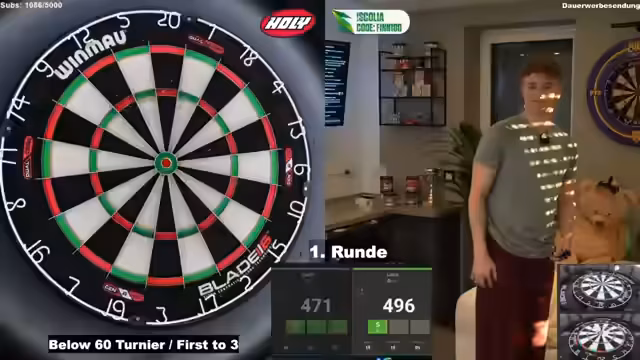 00:17:43Es wird ein neues Video angekündigt, in dem eine knackige Bruch-Challenge gegen Finn the Finisher stattfindet. Es geht um fünf Saburinskis und die Aufgaben sind: Top, Top, Top, Doppel 20, Doppel 20, zweimal Bull, einmal Single-Bull, Shanghai-Finish-Aute-Drei (Single-Drei, Triple-Drei, Doppel-Drei) und Back-to-Back 100 Punkte. Es wird erwähnt, dass eine Stunde dafür Zeit ist und Finn etwas skeptisch ist. Es wird auf den Kanal und den 8-Kalos-Streaming-Kanal verwiesen, um nichts zu verpassen. Es wird kurz auf die Toilette gegangen. Es wird ein Intro-Video gezeigt, in dem die Bruch-Challenge gegen Carlos vorgestellt wird. Es handelt sich um ein 1-gegen-1, bei dem der Verlierer fünf Subs giften muss, was etwa 25 Euro entspricht. Carlos ist gerade pinkeln und wird sich gleich zu Wort melden. Die Aufgaben werden noch einmal erläutert und es wird erwähnt, dass die erste halbe Stunde nicht miteinander geredet wird, um sich zu konzentrieren. Es wird um ein Abo auf dem YouTube-Kanal gebeten. Carlos kommt zurück und es wird über die Vorbereitung und den Timer gesprochen.