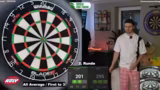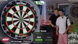 00:20:07Das Turnier beginnt mit dem ersten Match gegen den Gegner Tombi88. Nach einigen Würfen des Gegners kommt es zu einem Betrugsverdacht. Fiont und Carlos bemerken, dass Tombi88 Pfeile im Dartboard manipuliert, indem er sie nicht aus dem Board nimmt, sondern virtuell wirft. Ein Live-Clip des Vorgangs wird erstellt, der den Betrug belegen soll. Es folgt eine hitzige Konfrontation, in der der Gegner beschuldigt wird, zu schummeln. Nach öffentlichem Druck und dem Drohen, den Account bei der Turnierleitung zu melden, gibt Tombi88 das Spiel auf und die Streamer ziehen als Sieger ins Achtelfinale ein.