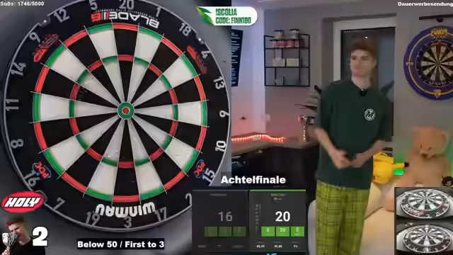 00:15:08Es wird überlegt, wann das 48er Turnier stattfinden soll, wobei der MSV-Besuch am Sonntag berücksichtigt werden muss. Es wird ein Zeitplan für das Turnier am Wochenende entworfen, der idealerweise am Freitagmittag beginnt und Sonntagmittag endet. Es wird erwähnt, dass die Hände ungewaschen sind und noch nach Subway riechen. Es wird der Gegner gelobt und ein 2-0 Sieg gefeiert. Es wird sich über die vielen Giftsubs gefreut und sich dafür bedankt. Es wird der Dartshop Smanowski empfohlen. Es wird überlegt, eigene Darts herauszubringen und die potenziellen Einnahmen kalkuliert. Es wird über die Schwierigkeit gesprochen, hohe Verkaufszahlen zu erreichen und der Einfluss von großen Streamern wie Papa Platte erwähnt. Es wird der Unterschied zwischen dem Aufwand für Promo bei früheren und aktuellen Drops der Schlafis hervorgehoben. Es wird angekündigt, dass die Darts wieder ausverkauft sind und nachbestellt wurden. Es wird der Cheatcode erwähnt, sich wie Steven Bunting bei der 10 zu stellen. Es wird über schwitzige Hände geklagt und ein Neuner angedeutet. Es wird über den Verlust des Lecks nach drei perfekten Darts gesprochen.