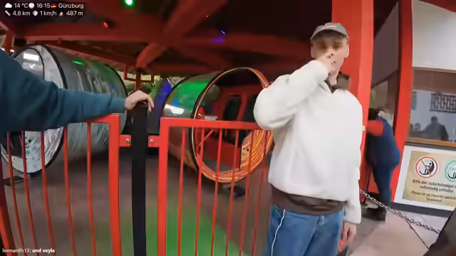 01:36:02Für den weiteren Tag werden Pläne geschmiedet. Die Gruppe trifft sich vor dem Clubhaus und erwägt eine Fahrt im Yago, einem Karussell, bei dem man in fliegende Positionen gelangen kann. Ein weiterer Favorit ist der Spinjutsu-Smasher, bei dem man kopfüber rotiert. Der Streamer möchte unbedingt diesen Dreh schaffen und bezahlt einen Begleiter, um die spektakulären Aktionen zu filmen. Die Vorfreude auf die wilden Fahrten ist groß.