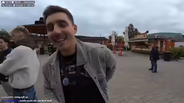 00:00:00Der Stream beginnt mit einer herzlichen Begrüßung der Zuschauer und des Co-Streamers Marcel. Der Streamer gibt bekannt, dass er sich im LEGOLAND Deutschland in Günzburg befindet und heute privat mit Kameramann streamen wird. Als Hauptgrund für den Besuch wird das Drehen eines Hide-and-Seek-Videos mit Content Creators für den Kanal Maxify genannt. Der Streamer erkundet mit der Kamera die Umgebung, begrüßt im Chat anwesende Namen und zeigt auf die Attraktionen, wie die Burg und die Drachenachterbahn, während er auf die Ankunft der anderen Creator wartet.