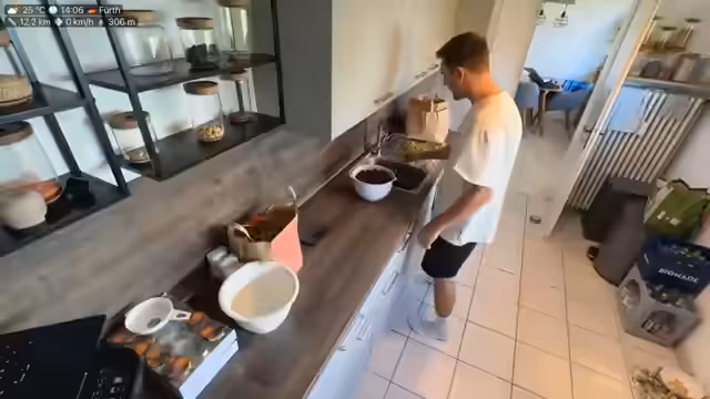 01:52:33Zu Hause angekommen, wird die technische Infrastruktur umgestellt. Der Streamer wechselt vom mobilen Handystream zu einem stationären Setup mit einer "Big Cam" und einem Laptop. Ziel ist eine höhere Bild- und Tonqualität für die anschließende Marmeladeproduktion. Dies erfordert jedoch erneut Aufwand bei der Einrichtung des neuen Aufbaus.