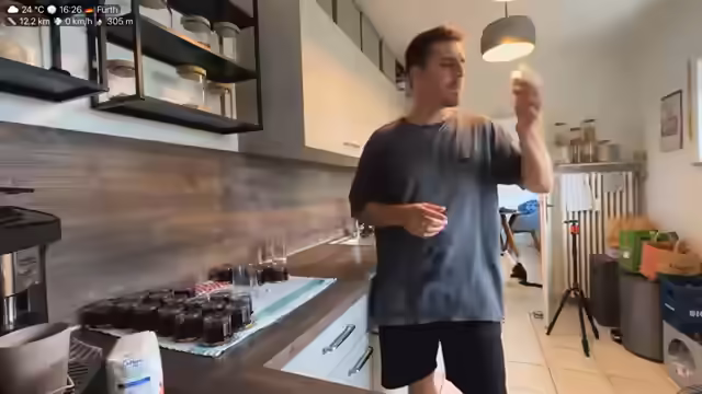 04:25:11Die restliche Marmelade wird in den Topf gegeben und es wird überlegt, Musik während der Arbeit zu hören. Es wird überlegt, wo die restlichen Gläser sind und die Menge der Marmelade wird im Chat diskutiert. Es werden Witze über das Hinzufügen von Überraschungen wie Katzenhaaren gemacht. Der Streamer holt weitere Gläser aus dem Keller und desinfiziert diese. Es wird überlegt, die Spülmaschine einzuschalten, aber aufgrund möglicher Lärmbelästigung verworfen. Der Chat wird nach einer kurzen prägnanten Formulierung gefragt, wie man ein Marmeladenglas bekommen kann. Es wird beschlossen die Spülmaschine einzuschalten, da es sich um einen Reallife-Stream handelt. Es wird die Küche aufgeräumt und der Wasserkocher angemacht. Der Streamer trinkt etwas und prostet dem Chat zu. Das Handy wird an die Powerbank angeschlossen. Die Katze Flip bekommt einen Snack und wird vom Streamer gestreichelt. Der Streamer erinnert sich an frühere Streams und plant zukünftige IRL-Streams, wie eine Radtour zu Dönerläden. Er äußert sich abgeneigt gegenüber dem Oktoberfest und bevorzugt kleinere Volksfeste. Es wird überlegt, was zum Abendessen gegessen werden soll und ein Wrap zubereitet. Der Streamer kündigt an, aus dem Stream einen Zusammenschnitt für YouTube zu erstellen und bittet um ein Abo des IRL-Kanals. Es wird kurz Zähne geputzt und das Gesicht gewaschen.