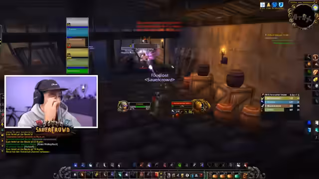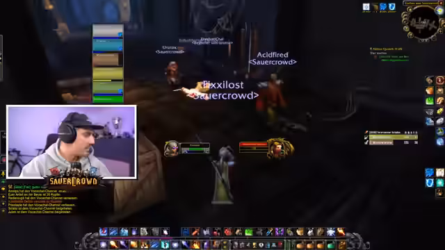 01:35:01Die Gruppe schließt sich zusammen, um das Verlies zu erkunden. Maxim, ein Gruppenmitglied, wird unerwartet in den PvP-Modus versetzt, was durch versehentliches Ankurren eines Mobs ausgelöst wurde. Der Streamer erklärt, wie man den PvP-Flag deaktivieren kann, da dieser nach fünf Minuten von selbst wieder ausgeht. Es wird eine gemeinsame Strategie entwickelt, um einen tödlichen Bosskampf zu meistern, bei dem der Tank das Tempo vorgibt und die Heiler für Mana-Angaben sorgen.