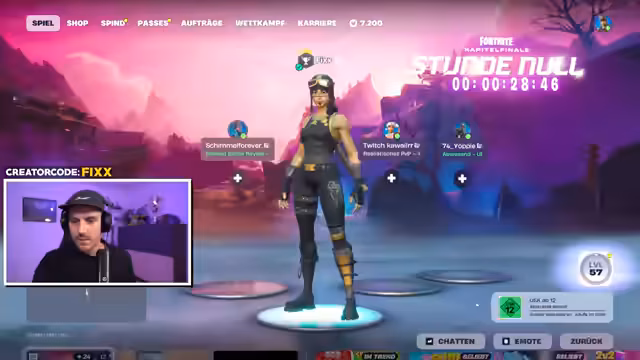 02:04:31Das Live-Event "Stunde Null" zum Fortnite Kapitelfinale wird als eines der wenigen Live-Events im Stream verfolgt, obwohl Live-Events den Streamer persönlich nie besonders interessiert haben; vielmehr lag der Fokus immer auf dem Spielspaß des jeweiligen Chapters. Trotzdem wird das Event live miterlebt. Es treten massive Serverprobleme auf, die dazu führen, dass eine Million Spieler sich aus- und wieder einloggen müssen, um überhaupt ins Spiel zu gelangen. Diese technischen Schwierigkeiten überschatten den Beginn des Events. Während des Wartens auf den Start des Spiels werden erste Leaks zum kommenden Chapter 7 besprochen, darunter eine neue Sniper, UI-Änderungen, eine mögliche Map mit Bereichen wie Sandy Strip und Battlewood Boulevard sowie die überraschende Möglichkeit, Reboot-Vans zu fahren und statt des Battle Buses auf die Insel zu surfen.