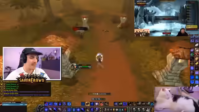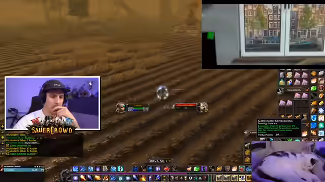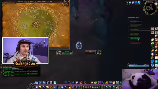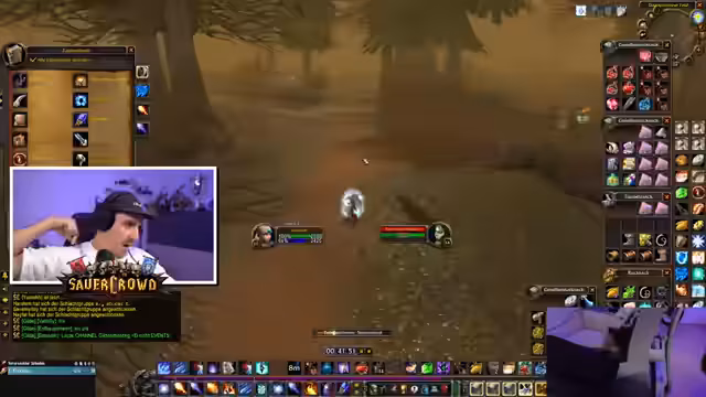 03:34:12Der Streamer erwähnt sein Bergbau-Beruf und seine Schwierigkeiten, Erz zu finden. Ein kurzfristiger Plan, bei einem Freund in der Hauptstadt Sturmwind vorbeizuschauen, wird aus Sicherheitsgründen aufgrund von PvP-Aktivitäten verworfen. Der Fokus liegt weiterhin auf dem "Sauerkraut"-Gaming-Projekt, dem Streamer sein intensives Engagement mit WoW zuschreibt, das ihn sacht nachts wach hält. Er deutet an, dass die Sucht nach WoW so stark sein könnte, dass er das Spiel bei einem Charakterverlust quitten würde.