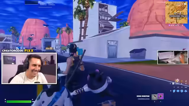 02:07:25Die Fortnite-Session mit Maxi, Alvi und anderen beginnt. Es kommt zu Verzögerungen, da nicht alle Spieler pünktlich sind. Während des Spiels wird auf die Performance der Waffen, insbesondere die der Schrotflinte, eingegangen. Der Streamer fühlt sich beobachtet und unter Druck gesetzt, muss sich aber immer wieder an Fehler im Bauen und in der Zielsetzung selbst erinnern. Die Organisation der Runden gestaltet sich schwierig, was zu Frust und langen Wartezeiten führt.
