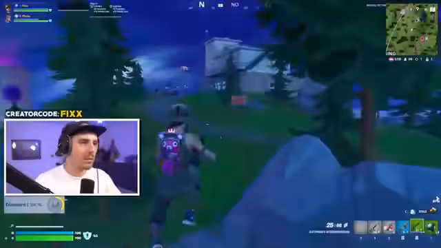 00:08:50Während des ersten Spiels testet der Streamer die neuen und zurückgekehrten Waffen, insbesondere die Kampfshotgun und die Hunting Rifle. Er stellt fest, dass die Hunting Rifle ihre alten Eigenschaften behalten hat. Das Gameplay wird von technischen Problemen wie demMovement-System und Bugs, wie z.B. nicht aufhebbbare Items, überschattet. Der Streamer kommt in der Runde weit, wird aber von einem Stream-Sniper getötet und beendet das Match mit sieben Kills. Die neue Map wird weiterhin als unübersichtlich und dunkel empfunden.