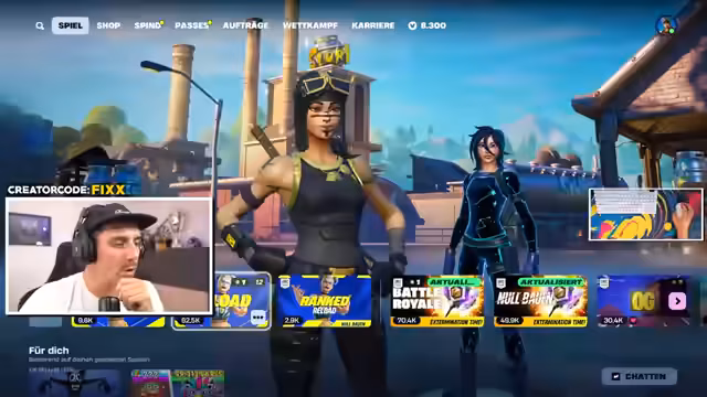 00:26:55Offiziell starten die Community Games. Der Streamer erklärt die Regeln für das Kill-Duell: Ein zufällig ausgewählter Zuschauer spielt gegen ihn im Spiel Fortnite. Das Ziel ist, die Runde zu gewinnen und am Ende mehr Kills zu haben als der Streamer. Der Gewinner erhält 10 Euro Epic Games Guthaben. Die Zuschauer auf TikTok müssen auf den Twitch-Stream umziehen, um teilnehmen zu können.