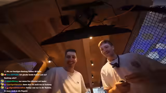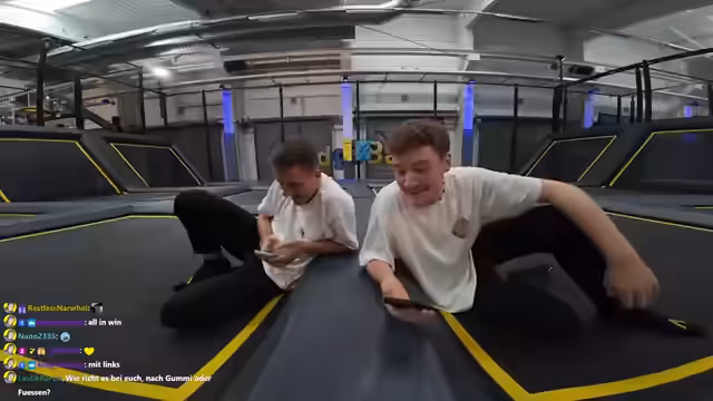 00:37:15Vor dem Trampolin-Abenteuer teilen die Streamer persönliche Einblicke. Einer von ihnen hatte einen Fahrradunfall im Bikepark mit einer leicht angebrochenen Hand, während der andere kürzlich eine Deutschland-Tour mit dem Fahrrad begonnen hat. Sie erzählen von einer gemeinsamen Nacht, bei der sie bei Thai-Essen philosophierten und Tipps für ihre jeweiligen Streams austauschten, was ihre langjährige, kooperative Beziehung unterstreicht. Ein gemeinsamer Chat beider Communities wurde etabliert.