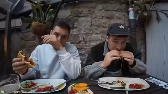 05:18:28Die beiden Personen befinden sich in einem vegetarisch-veganen Restaurant namens 'Zeit und Raum' in Nürnberg. Es wird intensiv über die Speisekarte diskutiert, insbesondere über einen Burger mit Croissant-Brot und ein Erdnusscurry. Nach einem ausführlichen Abwägen der Vor- und Nachteile entscheiden sich beide für den Burger, ergänzt um alkoholfreie Getränke und gebackene Garnelen. Die Auswahl wird als gute Entscheidung gelobt.