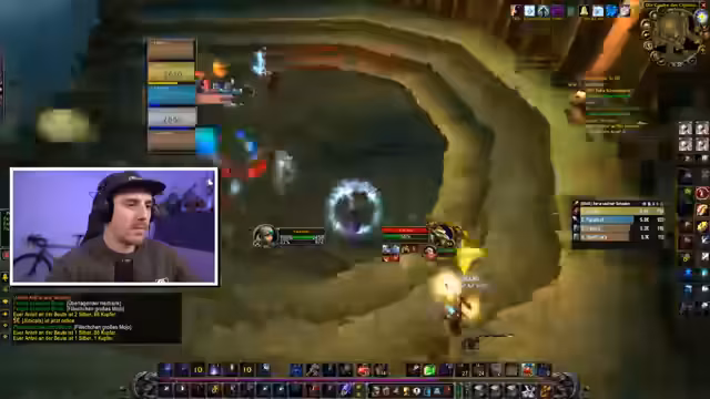 02:03:44Nach der Reportage kehrt der Streamer zurück zum eigentlichen Gameplay, dem Leveln seines Magiers. Er und seine Gruppe begeben sich in einen Dungeon, um XP zu farmen. Die Session ist von aggressivem Mob-Pulling und dem gezielten Einsatz von Manatrinken und Fähigkeiten wie Free Cast geprägt, um möglichst effizient zu sein. Obwohl es zu einigen gefährlichen Situationen und Ressourcenknappheit kommt, die fast zum Abbruch führen, schafft es die Gruppe, massive Mobs gleichzeitig zu bekämpfen und damit eine beeindruckende Menge an Erfahrungspunkten zu sammeln.
