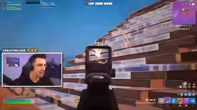 01:26:31Nachdem die Lobby zur Zone 4 zusammengefahren ist, plant der Streamer, den Tresor zu durchsuchen und in einem No-Build-Kampf seine Chancen auf einen Sieg zu wahren. Obwohl er bemüht ist, fair zu spielen, wird er im weiteren Verlauf der Runde eliminiert. Er ist sichtlich verärgert über den Verlauf und bezeichnet das Video als Scheiß-Video, da er früh ausgeschieden ist.