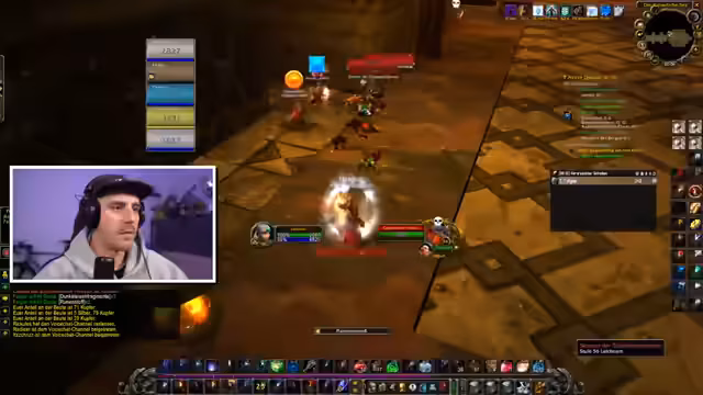 12:07:20Der Streamer macht sich Gedanken über seine verbleibende Erfahrungspunkte und den Weg zum Level-Up. Während die Gruppe weiter durch die Instanz zieht und Trash-Mobs killt, wird über Quests und die Abgabe von Gegenständen gesprochen. Die Gruppe ist in guter Stimmung und das Ziel, Level 60 zu erreichen, rückt immer näher, was eine besondere Spannung und Freude im Stream erzeugt.