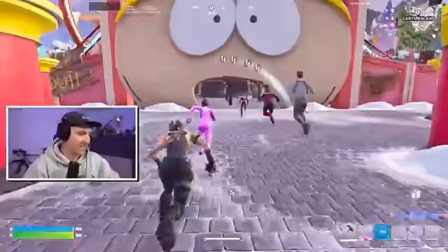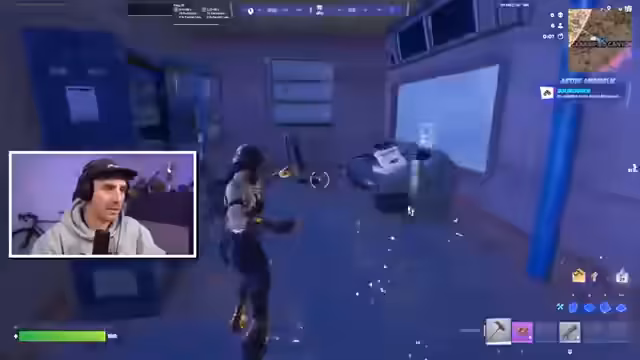 00:15:46Nachdem alle Teilnehmer im Spiel sind, startet das erste Battle-Royale auf einer Creative Map in einem Hochhaus. Die Regeln lauten: drei Leben pro Spieler, die Zone kommt von oben und unten und wer als letzter überlebt, gewinnt. Die Runde wird durch ständige Lags und technische Probleme beeinträchtigt. Nach anfänglichem Suchen nach Loot und Kämpfen zwischen den Teilnehmern endet das Spiel chaotisch, nachdem der Streamer und fast alle anderen Spieler durch Bugs und unfaire Taktiken wie Spawn Camping ausgeschieden sind.