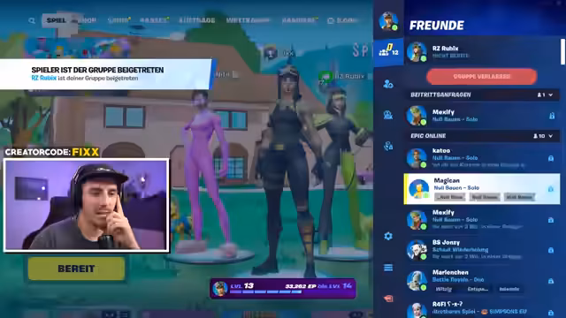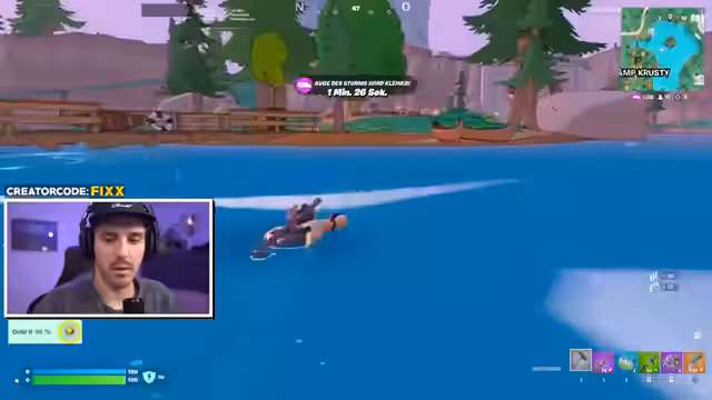 00:07:23Die erste Runde Fortnite beginnt mit dem Ziel, einen Sieg zu erringen. Der Streamer äußert sich überrascht über die Intensität der Gegner, die sofort 'schwitzen' und 'try-hard' spielen. Er überlegt, ob er heute noch Ranglistenspiele machen soll, da man angeblich schnell 'Unreal' erreichen kann. Er möchte sich jedoch zuerst einspielen und die Waffen der neuen Season kennenlernen. Es wird über empfohlene Bikeparks in Unterfranken gesprochen, wobei Oberhof als gute Option genannt wird, aber die Lage in Unterfranken unklar ist. Das Design der neuen Fortnite-Grafik im Simpsons-Stil wird als 'ganz cool' empfunden und weckt 'OG-Vibes', da Fortnite früher auch 'krass simpel' war. Es wird ein Sieg erzielt, und der Streamer merkt an, dass er bereits einen Gleiter erhalten hat. Er fragt die Zuschauer, ob sie einen Unterschied in seiner Sprechweise bemerken, und enthüllt später, dass er eine unsichtbare Zahnschiene trägt, die das Sprechen erschwert, aber anscheinend kaum auffällt.