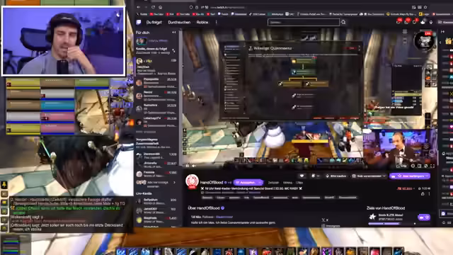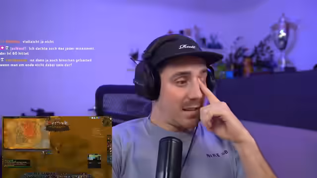 00:06:09Ein zentrales Thema des Streams ist das bevorstehende Guilden-Meeting, bei dem die Teilnehmer für den Molten-Core-Raid ausgelost werden. Über 160 Gildenmitglieder haben Level 60 erreicht, aber nur 40 dürfen teilnehmen. Der Streamer äußert massive Sorge, nicht für den Raid ausgewählt zu werden, und erklärt, dass dies für ihn das Ende des WoW-Projekts bedeuten würde, da der Sinn für ihn dann verloren ginge.