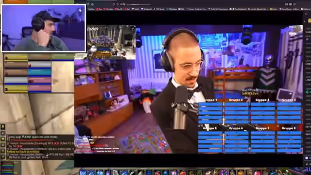01:52:26In einer dramatischen Wendung der Ereignisse, als die dritte Gruppe bekanntgegeben wird, stellt sich heraus, dass zu wenige Hexenmeister für einen komplexen Bosskampf verfügbar sind. Im Stream wird spontan ein 'Helfer-Call' gestartet, um zusätzliche Hexenmeister zu rekrutieren. Dies dient als finale Rettungsaktion, um den Raid-Kader trotz anfänglicher Löcher noch spielbar zu machen und die Dringlichkeit der Situation zu verdeutlichen.