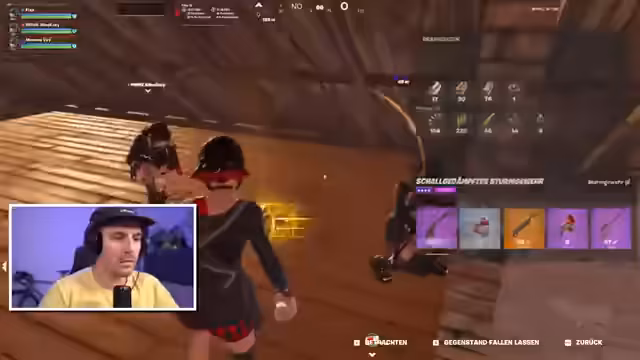 02:27:50Das Team fokussiert sich auf eine defensive Spielweise, um durch hohe Platzierungen sicher in die Top 3 des Creator Cups zu gelangen. Während der Loot-Phase in der Nähe von Junk Junction werden Ressourcen wie Big-Shields, Boogie-Bombs und Bunker gesammelt. Es wird intensiv über die Verteilung von Munition und Heilgegenständen kommuniziert, um für die kommenden Kämpfe optimal vorbereitet zu sein. Trotz kleinerer technischer Hindernisse wie einem Laufbug bleibt die Stimmung konzentriert.