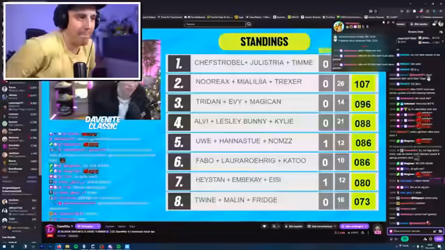 03:31:46Nach der zweiten Runde werden die aktuellen Standings präsentiert, während die Lobby für die nächste Runde bereits geöffnet ist. Das Team belegt aktuell den elften Platz, was als solide Leistung bewertet wird, auch wenn man knapp hinter Konkurrenten wie Albi liegt. Es wird über die Punkteverteilung und die Stärke der gegnerischen Trios diskutiert, wobei insbesondere die hohe Kill-Anzahl einiger Top-Teams für Erstaunen sorgt.