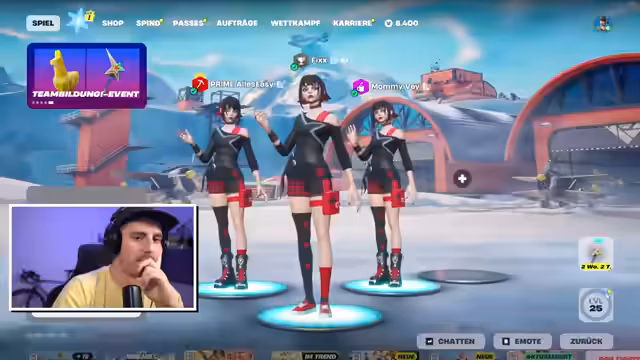 00:02:19Der Streamer begrüßt seine Community auf Twitch und TikTok zu einem neuen Fortnite-Event. Er berichtet von einem massiven Spiel-Update über 60 Gigabyte, das seinen Zeitplan verzögert. Trotz der technischen Schwierigkeiten ist die Stimmung gut, und es werden erste Interaktionen mit den Zuschauern durch persönliche Begrüßungen und Vornamen-Abfragen im Chat durchgeführt.
