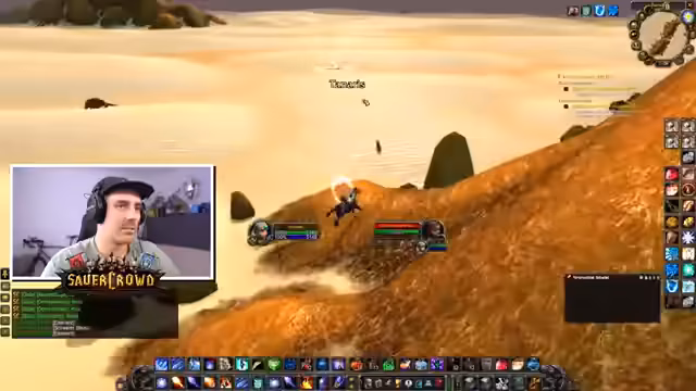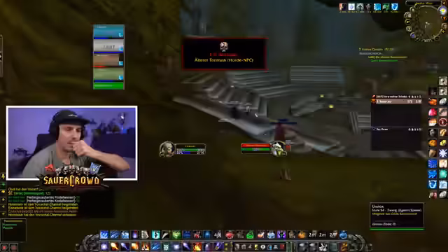 06:24:18Der Streamer beginnt, die verschiedenen Buffs für den Raid zu sammeln. Er erhält den 'Wachen-Buff' aus Booty Bay, der für 15 Minuten anhält und nur alle 60 Minuten einmal neu gepackt werden kann. Beim Server-Hopping (Layer-Hopping) stößt er sofort auf einen Elite-Drachen in der Brennenden Steppe, was die Gefahr und den Frust solcher Aktionen verdeutlicht. Ziel ist es, eine maximale Buff-Anzahl vor dem Raid zu haben.