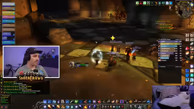 07:38:56Der Stream setzt sich durch den fort, wobei sich die Umgebung immer komplexer gestaltet. Es werden mehrere Patrols und Trash-Packs bekämpft, die für unvorbereitete Spieler gefährlich sein können. Der Streamer agiert als Anführer und koordiniert die Ziele, während er gleichzeitig für ordnungsgemäße Heilung und Damage sorgt. Die Kommunikation innerhalb der Gruppe ist entscheidend, um Auflösungen zu vermeiden. Die Situation wird angespannt, als unerwartete Adds auftauchen, doch die Gruppe bleibt ruhig und meistert die Situation mit klaren Anweisungen.