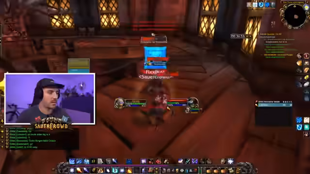 08:40:03Nach dem Dungeon berichtet der Streamer über eine Wahl in der Gilde, bei der ein neuer Leader bestimmt wurde. Die Gruppe plant nun, den nächsten Dungeon Burg Schattenfang aufzusuchen. Da dieser Dungeon weit entfernt ist, wird über die Flugpunkte gesprochen und die Route zum Zielgebiet Arathi-Hochland besprochen, wobei die Stärke der Gegner dort als 30+ eingestuft wird.