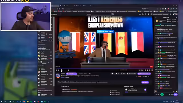 01:53:01Der Streamer identifiziert und bewertet einige der teilnehmenden Teams, insbesondere die französische Mannschaft um Nikoff, als ernstzunehmenden Gegner. Er versucht, psychologische Vorteile zu erzielen, indem er den Franzosen direkt im Stream eine Herausforderung stellt. Gleichzeitig macht er Werbung für die Creator-Codes der Teammitglieder und ruft die internationalen Zuschauer auf, zu unterstützen und die Spannung des Events zu steigern.