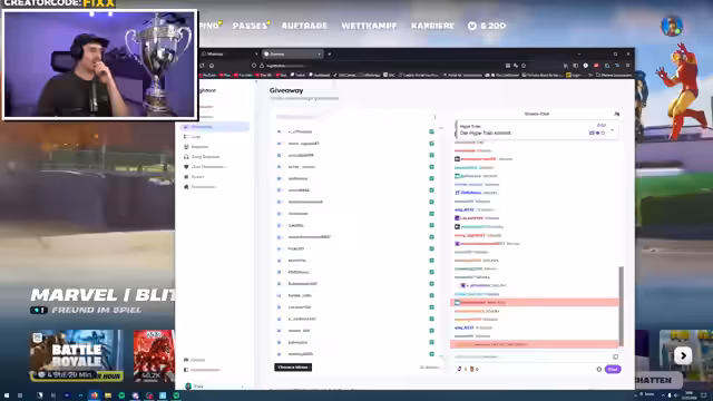 01:55:15Kurz vor dem offiziellen Turnierstart werden alle technischen Anpassungen vorgenommen, so wird der anonyme Modus aktiviert, um das unerwünschte Zuschauen der Gegner zu verhindern. Der Streamer stellt sicher, dass alle Teammitglieder im Squad-Stream sind und gibt einen letzten Motivationsschub. Mit einer beeindruckenden Rede versammelt er seine Mitspieler und das Publikum und ruft aus, dass heute der Tag sei, an dem sie die 100.000 Euro gewinnen werden.