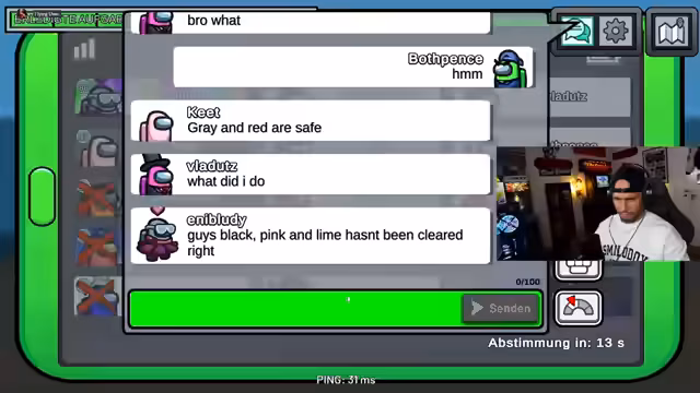 00:09:34Die ersten Runden in Among Us sind von Unsicherheit geprägt, da der Streamer die Rollen und Aufgaben noch nicht vollständig versteht. Er fragt sich, ob er als Mörder (Imposter) trotzdem Aufgaben lösen kann oder ob er nur so tun muss. Die Interaktion mit dem Chat hilft ihm, grundlegende Mechaniken wie das Verdrahten von Elektrik oder das Einführen von Karten zu begreifen. Er äußert den Wunsch, sich nicht zum Affen zu machen, wenn er später mit seinen Freunden spielt, und überlegt, ob Hintergrundmusik während des Spiels sinnvoll wäre. Die Verwirrung über das Abstimmungssystem und die Bedeutung von Begriffen wie 'Imposter' oder 'Verräter' zieht sich durch die ersten Spielminuten, wobei er versucht, die Logik hinter den Entscheidungen der anderen Spieler zu erfassen.