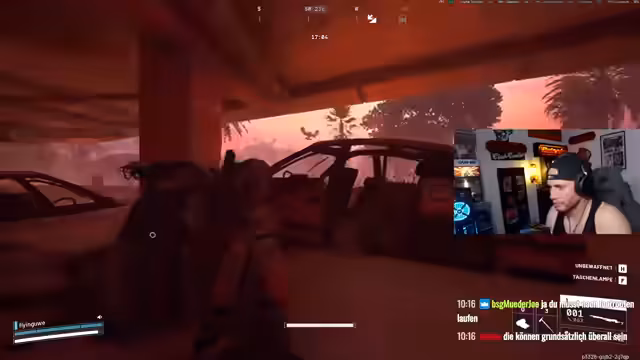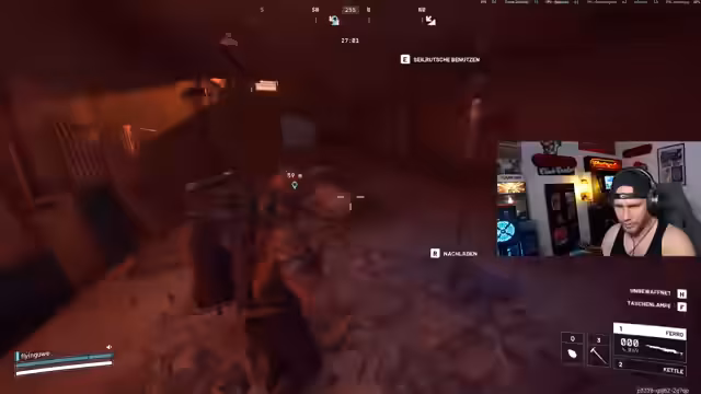 01:27:03Während des Spielverlaufs interagiert der Streamer mit anderen Spielern. Er versucht, einem Spieler namens Chad zu helfen, ist aber unsicher, ob dieser ihn überhaupt sieht oder bereits gegangen ist. Diese Szene zeigt den kooperativen Aspekt des Spiels, auch wenn die Kommunikation schwierig erscheint.