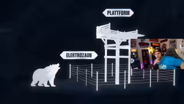 01:27:36Die Länge der Kette, die Hugo und Uwe verbindet, wird thematisiert und als 'What the fuck? 99?' beschrieben, was auf eine unerwartet lange Kette hindeutet. Es wird klar, dass der Streamer Rechtshänder ist, während Hugo Linkshänder ist, was die Handhabung der Kette erschwert. Der Regen setzt ein und macht die Situation noch unangenehmer. Die Aufgabe, die Truhe am Ende des Tages zu öffnen, wird als schwierig empfunden. Die Kette selbst war keine Überraschung, da beide wussten, dass sie angekettet sein würden und dass sie sich in Transsilvanien mit vielen Bären befinden würden. Sie entdecken zwei Schlafsäcke und eine Plane auf der Plattform. Der Streamer schlägt vor, baden zu gehen, merkt aber schnell, dass dies aufgrund der Kette nur gemeinsam möglich wäre. Die Kette erweist sich als Hindernis, da ihre unterschiedlichen Händigkeiten zu Problemen führen.