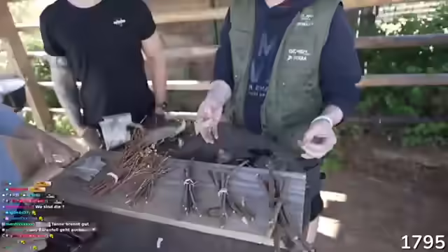 02:11:07Als Belohnung für die Challenge wird ein Survival-Kit überreicht, das unter anderem einen Kompass, einen Feuerstein und ein Seil enthält. Es wird demonstriert, wie man den Feuerstein benutzt, indem man das schwarze Material entfernt, um Funken zu erzeugen. Zuvor gab es einen Prank mit Spaghetti, bei dem einige Teilnehmer Angst hatten, dass es sich um Würmer handelt. Ein Teilnehmer kotzte sogar, weil er dachte, es wäre ein 'manifestierender Wurm'. Es wird diskutiert, wie lange der Fisch noch im Ofen ist, und es wird erwähnt, dass die Spaghetti frisch in der 'Kellyküche' gekocht wurden. Die Spaghetti-Aktion wird als Prank entlarvt, nachdem zuvor ein Teilnehmer fast gekotzt hätte, weil er dachte, es wären Würmer.