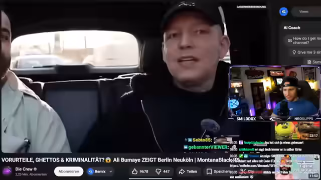 00:39:30Der Streamer analysiert die kritisierten Aussagen von Montana Black während eines Spaziergangs durch Berlin-Neukölln mit Ali Boumaier. Monte hatte den Bezirk als befremdlich und nicht schön beschrieben und in einem unpassenden Moment auch Berlin als 'großer Haufen Scheiße' bezeichnet. Der Streamer betont, dass Monte mit seinen Aussagen zwar vorsichtig war, sich aber im Ausdruck verhedderte und für Kritik sorgte, da seine Äußerungen aus dem Kontekt gerissen wurden.