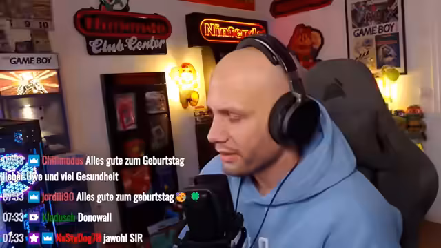 00:00:00Der Stream beginnt ungewöhnlich früh am Morgen. Der Streamer, flyinguwe87, begrüßt seine Zuschauer und erzählt von seinem unregelmäßigen Schlafverhalten, da er gestern den ganzen Tag unterwegs war. Er erwähnt diverse Aktivitäten wie eine Produktion, das Einrichten eines Zimmers für seine Kinder und eine späte Mahlzeit. Nach diesen Bemerkungen kommt er auf den eigentlichen Grund für den frühen Start zu sprechen. Es ist der 11. Februar und er hat Geburtstag. Er begrüßt die Glückwünsche im Chat und stellt sein Getränk, Geburtstagswasser, vor.
