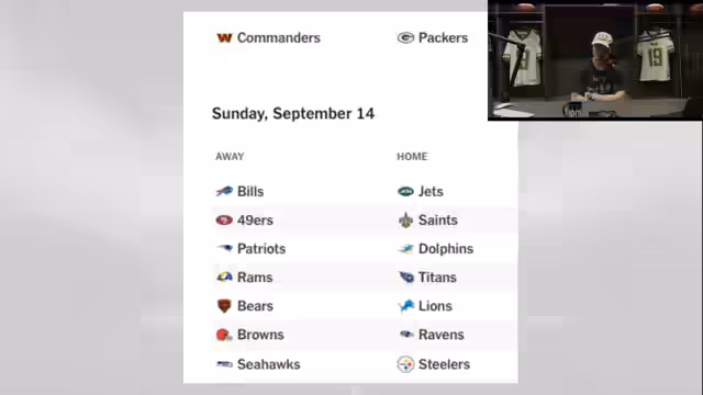 00:36:09Der Streamer gibt einen Ausblick auf die kommenden Matchups und gibt Fantasy-Empfehlungen. Er beginnt mit Commanders gegen Packers und rät von Josh Jacobs ab. Stattdessen empfiehlt er Jakori Kroski-Meritt von den Commanders. Er erwartet ein Highscoring-Spiel zwischen Bills und Jets und sieht Potenzial für Justin Fields als Quarterback-Option. Er empfiehlt JSN, Amon Ra und Jamal Chase aufzustellen. Bei der Entscheidung zwischen DK Metcalf, DJ Moore, Jerry Judy und Hollywood Brown bevorzugt er Jerry Judy aufgrund des Matchups, sieht aber DJ Moore als sichere Wahl. Der Streamer bedauert, Fields gegen Goff getauscht zu haben. Er erwartet eine Revanche der Niners gegen die Saints und sieht gute Optionen in Garrett Wilson und Jawan Johnson. Er rät von Tua Tagovailoa ab, obwohl es ein gutes Matchup sein könnte. Bei den Bears-Lions empfiehlt er Amon Ra und Caleb Williams. Er sieht Potenzial für die Browns durch die Luft gegen die Ravens und empfiehlt DK Metcalf gegen die Seahawks. Abschließend analysiert er weitere Spiele und gibt spezifische Spielerempfehlungen.