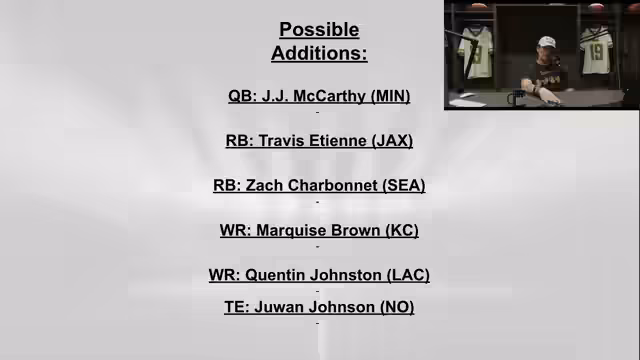 00:58:06Die Diskussion dreht sich um verschiedene Fantasy-Football-Strategien und Spielerbewertungen. Marquise Brown wird als Top-Anspielstation für Patrick Mahomes hervorgehoben, besonders da Xavier Worthy verletzt ist. Brown wird als schneller Spieler mit dem Potenzial für einen großen Vertrag beschrieben, ähnlich wie Tyreek Hill. Quentin Johnson sollte man im Auge behalten, trotz einiger Schwierigkeiten beim Fangen von Bällen. Jawan Johnson wird als verlässliche Option im Redzone-Bereich genannt. Es wird empfohlen, einige dieser Spieler über die Waiver-Wire zu verpflichten. Die Zuhörer werden ermutigt, Fragen zu Fantasy-Football zu stellen. Ein Zuhörer fragt, ob man Etienne vor Breece Hall setzen sollte, woraufhin geantwortet wird, dass beide Spieler gleichwertig sind, aber Etienne aufgrund seiner besseren O-Line und der Offensivstrategie bevorzugt wird. Ein Trade von Mike Evans für Travis Etienne wird als gleichwertig angesehen, abhängig von der Receiver-Situation des Teams. Es wird diskutiert, ob man Dobbins oder Mason für Kroski Merritt fallen lassen sollte, wobei zu Merritt tendiert wird, aufgrund seines höheren Potenzials. Tyreek Hill sollte man nicht aufgeben, da ein Trade Request von ihm nicht ausgeschlossen wird, sollte die Leistung der Dolphins weiterhin schlecht sein. Die Unzufriedenheit mit der Dolphins-Offensive und die mögliche Konsequenzen für Head Coach Mike McDaniel werden angesprochen. Ein Trade von Mike Evans für Etienne wird empfohlen, um die Running-Back-Position zu stärken und Verletzungen vorzubeugen.