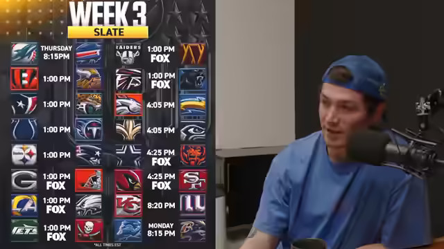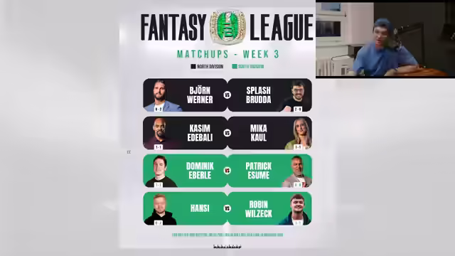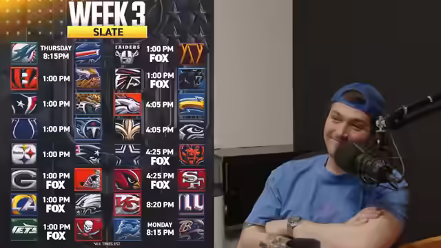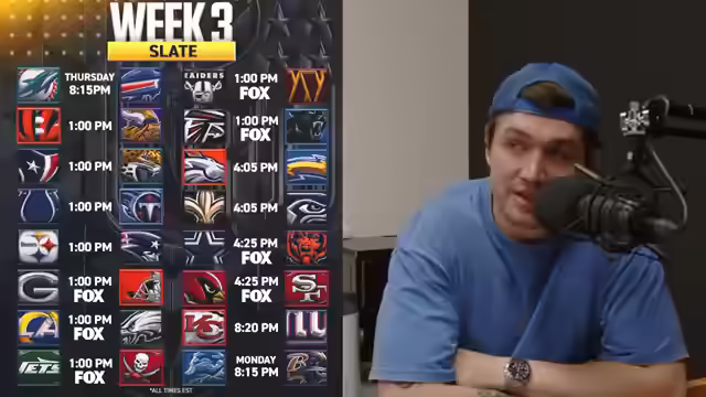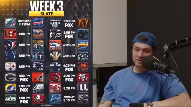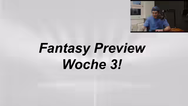 00:06:18Der Streamer beginnt mit einer Vorschau auf die Fantasy-Football-Woche 3, einschließlich des Spiels Buffalo Bills gegen Miami Dolphins. Er betont die Bedeutung des Spiels für Miami und prognostiziert, dass Buffalo wahrscheinlich gewinnen wird. Er diskutiert auch Fantasy-Optionen für dieses Spiel und hebt Tyreek Hill und A-Chain für Miami hervor. Für Buffalo empfiehlt er, Spieler wie Kion Coleman, James Cook, Josh Allen und Khalil Shakir in Betracht zu ziehen. Er erwähnt auch die Möglichkeit, dass die Buffalo Bills Defense viele Punkte erzielen könnte. Es wird die Idee einer Grafik zur Visualisierung von Teamaufstellungen und Spielergebnissen diskutiert, um die Fantasy-Analyse zu verbessern. Der Streamer äußert sich zu Spielern wie BTJ und gibt Ratschläge zu Goff vs. Herbert. Abschließend werden die Matchups der Woche durchgegangen, darunter Björn gegen Splashbruder, Kasim gegen Mika und der Streamer selbst gegen Patrick Esume.