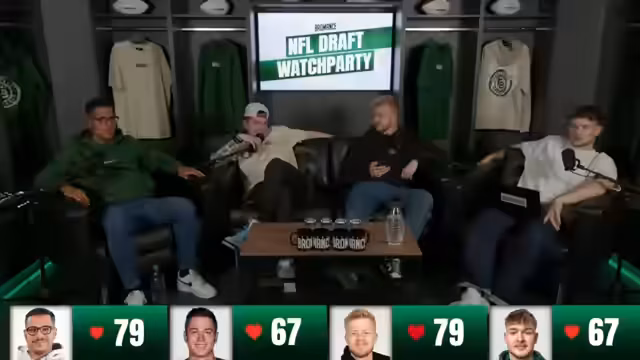 01:34:18Die Streamer danken ihrer Community für den Support, da dieser Merch-Verkäufe die Gehälter finanziert und die gesamte Veranstaltung erst ermöglicht. Sie präsentieren den neuen Fanartikel, einen Hoodie mit Patch-Logo, und verweisen auf die Website footballbromance.com zum Kauf. Bezüglich der Draft-Übertragung klären sie die Zuschauer auf, dass die erste Runde kostenlos auf Nitro und RTL Plus zu sehen ist, ohne ein bezahltes Abo zu benötigen. Sie weisen darauf hin, dass der Draft in mehreren Runden über mehrere Tage verteilt ist und kündigen an, den Ablauf und Picks zu kommentieren.